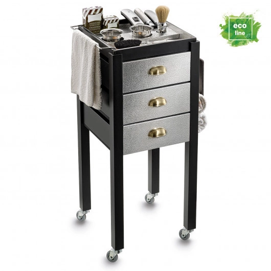 Pomocnik fryzjerski BARBER marki ARTECNO® to symbol jakości i renomy włoskiego producenta, a także kwintesencja nowoczesnego myślenia o użytkowym wzornictwie. Ten niezastąpiony w każdym salonie barberskim element wyposażenia ułatwi pracę stylisty fryzur czy barbera. Jest lekki i mobilny, posiada mocną drewniano-aluminiową konstrukcję opartą na 4 antypoślizgowych kółkach. Dzięki trzem pojemnym szufladom z wygodnymi uchwytami, pozwala w prosty sposób zachować porządek na stanowisku pracy, ale też w każdej chwili i bez przeszkód sięgnąć po potrzebne kosmetyki czy narzędzia. Jego zaletą są też specjalne, podręczne uchwyty na ręczniki. Stolik fryzjerski ARTECNO® BARBER jest odporny na uszkodzenia i bardzo trwały, wygodny w czyszczeniu. Mebel fryzjerski wykonany został z połączenia drewna i aluminium. Ze względu na swoją prostą formę pasuje do wnętrz w wielu różnych stylach.