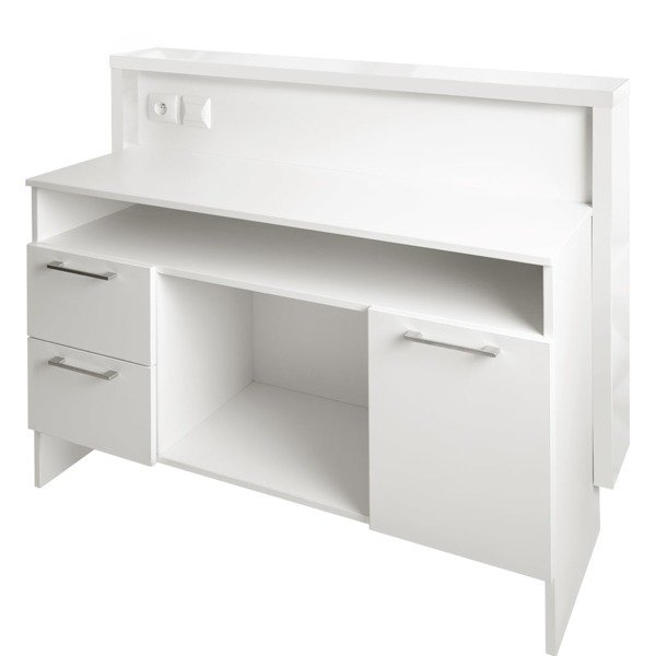 Trudno o bardziej praktyczne rozwiązanie do salonu kosmetycznego, barberskiego czy fryzjerskiego, niż recepcja kosmetyczna z linii SOFIA polskiego producenta PANDA TRZEBNICA. Nowoczesny design z podświetlanym panelem z przodu sprawi, że Twoja firma da się zapamiętać z najlepszej strony. Zamykane pojemne szuflady, wygodne wnęki, a także półki wpłyną na organizację pracy i pozwolą przechowywać niezbędne przedmioty pod ręką. Efektywność jest w końcu kluczem do sukcesu!