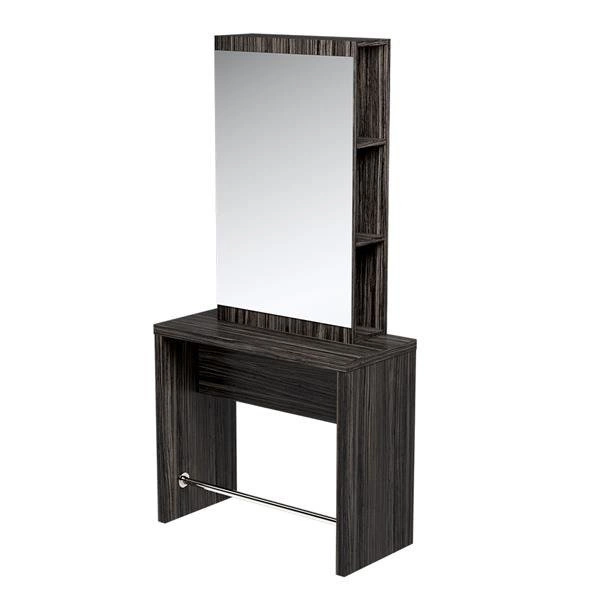 Wolnostojąca konsoleta fryzjerska CARO jednostronna to świetne rozwiązanie dla salonów fryzjerskich, które posiadają więcej przestrzeni. Mebel fryzjerski został wykonany z płyty laminowanej i został wyposażony w bardzo wygodne półki, usytuowane pomiędzy taflami lustra.