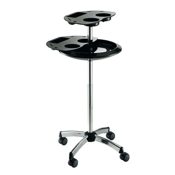 Pomocnik fryzjerski ARTECNO® GIOTTO ułatwi Ci organizację pracy przy koloryzacji. Stolik fryzjerski posiada uchwyty na folię i miseczki, jak i również dwupoziomową tacę.