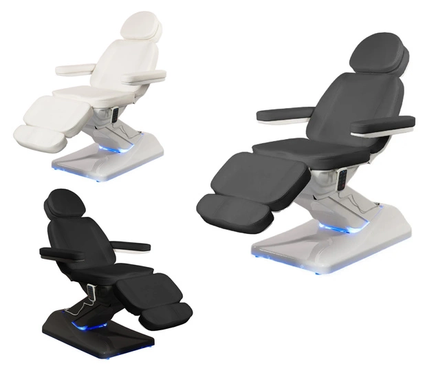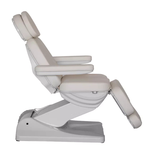Fotel kosmetyczny OASIS elektryczny został wyposażony w 4 silniki, które kontrolują wysokość oraz nachylenie oparcia, siedziska i