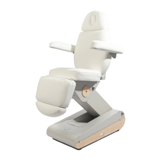 Wyprofilowany w dość niespotykany sposób materac, unikat jakiego jeszcze nie było! Optymalnej szerokości i długości zagłówek, gruby i bardzo wygodny materac z wbudowanymi dwoma rodzajami gęstości oraz stabilna, podświetlana podstawa. Gotowy do pracy fotel kosmetyczny, który ma wiele zastosowań dzięki różnego rodzaju rozwiązaniom technologicznym! Wysoka jakość tapicerki, odpornej na zarazki i promieniowanie UV o dużej ścieralności aż >400 tys. cykli, możliwość wymiany kolorystyki podstawy fotela, poprzez szybką zmianę koloru paneli, gdy tylko sobie o tym zamarzysz. Dokup je teraz lub w przyszłości, aby zmienić design fotela w kilka sekund! Jedna z najbardziej przydatnych funkcji - ustawienie fotela w pozycji Trendelenburga! Wszystko to znajdziesz w tym jednym meblu medycznym!
