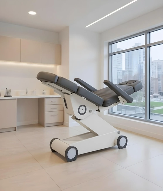 Wyjątkowy fotel kosmetyczny w wyjątkowej aranżacji z pewnością sprawdzi się w każdym salonie urody, gabinecie medycyny estetycznej czy też innych salonach usługowych. Elegancka i solidna obudowa, z podświetlaną podstawą dodaje elegancji i wykwintności w każdym pomieszczeniu. Postaw na jakość, w rozsądnej cenie i eleganckim wyglądzie mebla kosmetycznego, a z pewnością nie pożałujesz tego wyboru!