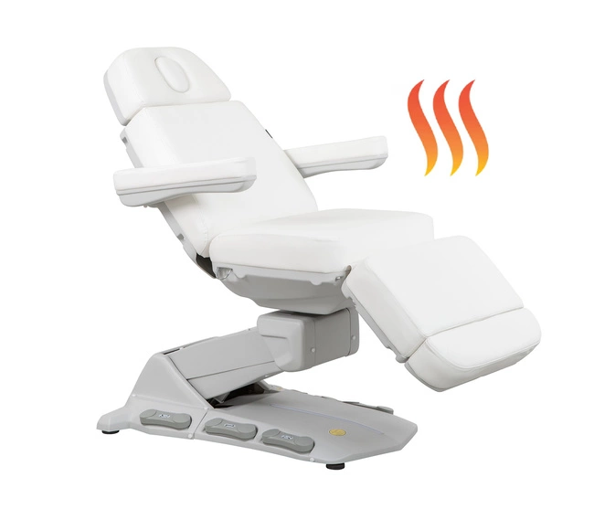 Opinie o Fotel kosmetyczny obrotowy 110° WEELKO® MAXI COZY HT z kolumną wysokiego unoszenia z ULTRA KOMFORTOWYM podgrzewanym białym materacem