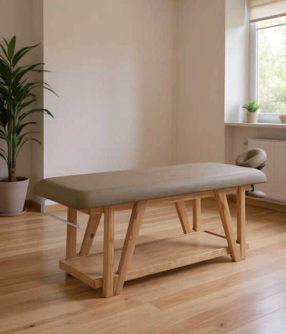 Łóżko do masażu WEELKO® ROOTS z bezową tapicerką