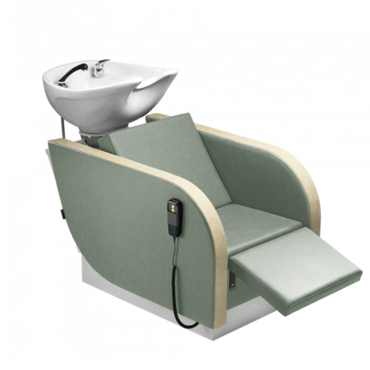 Dzięki elektrycznie sterowanemu podnóżkowi w szybki i prosty sposób podnosimy komfort użytkowania tej myjni fryzjerskiej. Wysoka jakość użytkowania przez dłuższy czas ma ogromne znaczenie podczas regenerujących zabiegów na włosy. W tym przypadku taka myjnia fryzjerska w pełni spełni oczekiwania klienta, co do wygody jej użytkowania podczas długich stylizacji włosów.