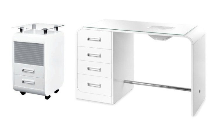 Biurko do manicure VERDI polskiej, renomowanej marki Panda Trzebnica to mebel, którego nie może zabraknąć w nowoczesnym salonie pielęgnacji paznokci. Jest dostępne w ofercie producenta w wersji z pochłaniaczem pyłu lub bez. Stolik wykonany został z wyjątkowo trwałych i odpornych na zarysowania płyt lakierowanych MDF w czarno-białym kolorze, które bardzo łatwo utrzymać w czystości. Dzięki sporej ilości pojemnych szuflad, w których można przechowywać narzędzi i akcesoria, praca jest nie tylko efektywna, ale przede wszystkim przyjemna. Dodatkowo w duecie z biurkiem do manicure VERDI otrzymasz praktyczny pomocnik kosmetyczny VERDI, dzięki czemu nie tylko zwiększysz swoją wygodę, ale też zadbasz o estetykę prowadzonego przez siebie salonu. Klienci, obsłużeni z najwyższą troską o jakość, z całą pewnością zadowoleni wrócą do Twojego lokalu.