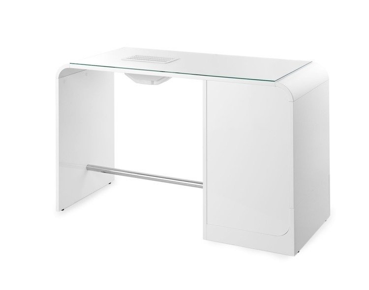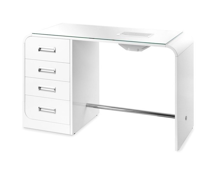 Biurko do manicure VERDI polskiej marki PANDA to nowoczesny stolik do zabiegów manicure w dwóch wersjach: z pochłaniaczem pyłu lub bez. Jego konstrukcja wykonana jest z trwałych i eleganckich płyt lakierowanych MDF w kolorach białym i czarnym. Idealnym uzupełnieniem biurka VERDI jest pomocnik kosmetyczny Verdi, który nie tylko zwiększy komfort pracy i pozwoli na zachowanie porządku, ale też stylowo uzupełni aranżację wnętrza. W komplecie znajduje się także taboret kosmetyczny TF IV LUX, osadzony na mobilnej pięcioramiennej podstawie i posiadający wyjątkowo ergonomiczne oparcie. Lampa lupa 1001 bez statywu o sile trzech dioptrii, wyposażona została w elastyczne ramię z możliwością regulacji w zależności od potrzeb. Całość jest wysoce funkcjonalnym rozwiązaniem do salonu kosmetycznego, wpływającym na jakość wykonywanych usług i zadowolenie klientów.