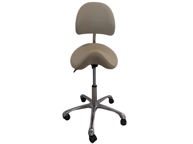 Profesjonalny taboret kosmetyczny SIODŁO z oparciem marki MEDIZIO to solidny mebel kosmetyczny, który z pewnością spełni swoje zadanie podczas wielogodzinnej pracy w gabinetach kosmetycznych, medycznych, podologicznych czy stomatologicznych.
