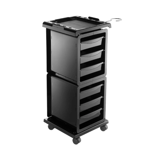 Wszelkie rozwiązania, które wpływają na jakość pracy i jej czas, w salonie fryzjerskim są na wagę złota. Tak, jak niezawodny pomocnik fryzjerski ARTECNO® MODUS IKEART. Najważniejszą jego zaletą jest połączenie designerskiego wyglądu z praktycznością. Dzięki licznym pojemnym szufladom i półeczkom, pomocnik pomaga utrzymać nienaganny porządek na stanowisku pracy. Mebel fryzjerski dostępny jest w kolorze czarnym i dzięki temu z pewnością wpasuje do aranżacji Twojego wnętrza.