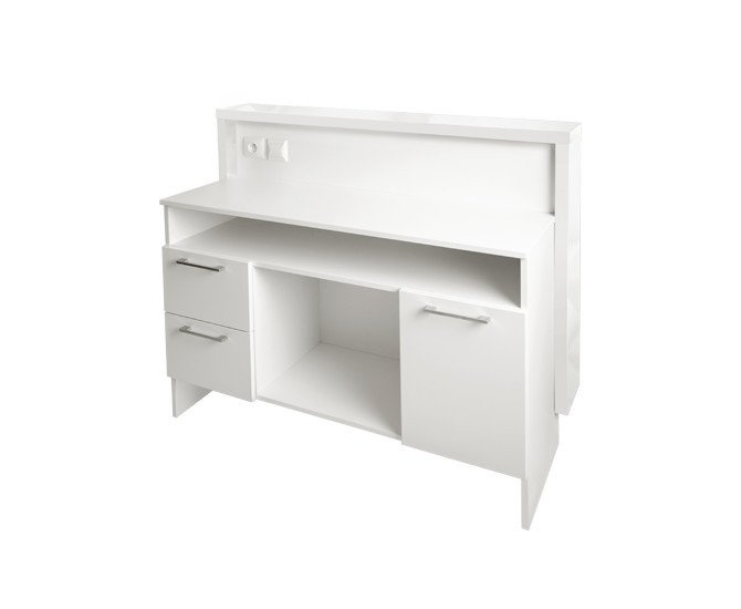 Ta recepcja kosmetyczna z linii SOFIA polskiej marki PANDA TRZEBNICA zachwyci i zwróci uwagę każdego klienta, wpływając na to, jak odbierana będzie Twoja firma. Niezależnie od tego, czy planujesz wyposażyć gabinet odnowy biologicznej czy zakład barberski, wybierz mebel wyróżniający się nowoczesnym podświetlanym za pomocą światła LED panelem z przodu. Po stronie osoby obsługującej stanowisko na uwagę zasługuje ilość miejsc, w których można przechowywać dokumenty i niezbędne akcesoria: zamykane szuflady, wygodne wnęki, półki to elementy ułatwiające utrzymywanie ładu. Recepcja fryzjerska wykonana jest z płyt akrylowych o dużej odporności na zarysowania. Subtelny kremowy kolor z subtelnym połyskiem będzie pasował do wielu różnych aranżacji zarówno w męskim, jak i typowo damskim salonie. Postaw na prestiż z wyjątkowym meblem kosmetycznym marki PANDA!